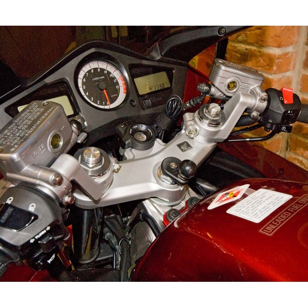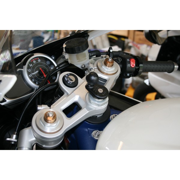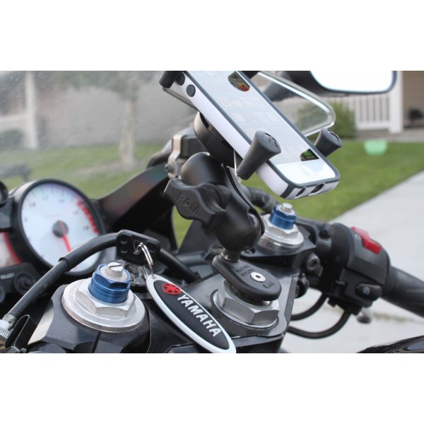 The RAM fork stem mount is one of the cleanest ways to mount small electronics on your motorcycle. Simply slide the assembly into the hole of the stem and tighten the machine screw to create a tight fit. This part is designed to fit into the cylindrical bore wall of fork stems and will work with stems that measure from 12 -20mm and 28mm or .5” – 1.10” at the following intervals: