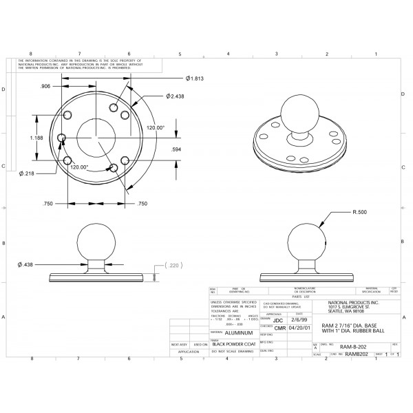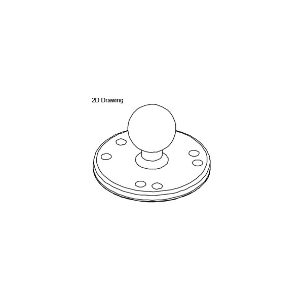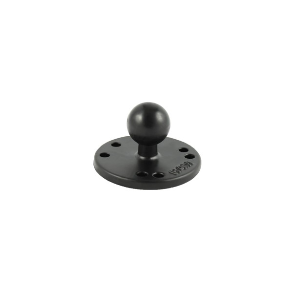 The RAM-B-202U consists of a 1" diameter rubber ball connected to a flat 2.5" diameter base. This mount has pre-drilled holes, including the universal AMPS hole pattern.