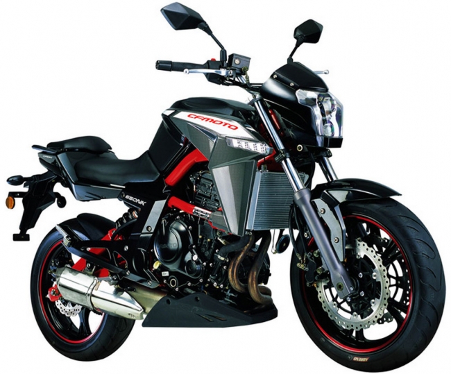 650NK CFMOTO 650NK is a very aggressive bike with its special and advance design.Besides the durability and reliability, the 52kw power could bring you unique riding experience. Ducati ECU , FCC paper based friction plate, full alloy nickel silicon carbide cylinder, Marelli injector NTN/NSK imported bearing, and TO Goetze racing piston ring Engine is twin cylinder in line, 4 stroke, 8 valves, liquid cooled engine, 52kw Both front and rear shock absorber are from KYB Japan. The front shock absorber is Upright telescopic , with diameter 41mm, travel length 120mm. The rear shock absorber is air-gas mixed, with 7 adjustable sections, travel length 45mm. These absorbers efficiently ease the shocks from the road and allow the driver sit and ride comfortably and stable.