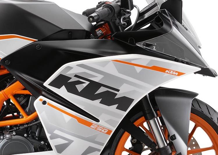 The KTM RC 250 shares the same design as the other RC's but shares its white side body with the elder RC 390. The ground clearance and seat height remains the same as on the older RC bikes making it clear to the riders that choose your performance option, the style would be complimentary for all the models. One body, different souls!!