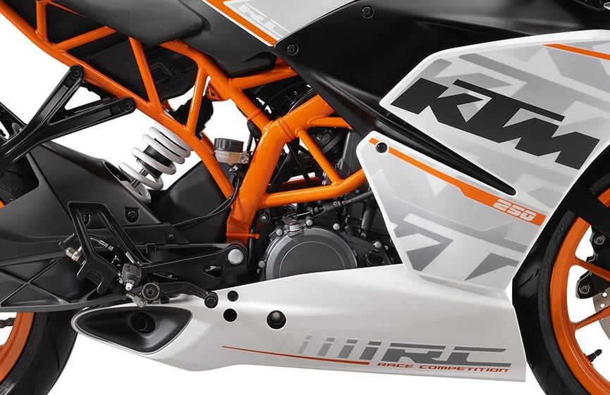 RC 250 has a 248.8 cc engine producing nearly 30.7 BHP @ 9000 rpm and 24 NM of torque @ 7250 rpm. The single cylinder, liquid cooled unit also uses the power assisted slipper clutch with anti-hopping technology. The engine is a lightweight unit, with 37.2 kg weight and also is classified as the strongest unit in its class. The making quality of the KTM products is a strong positive impact maker for the company. The engine is mated to a 6-speed manual gearbox.