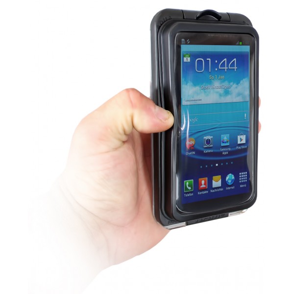 The RAM AQUA BOX® product line has been keeping mobile phones and devices safe for years. Now, with the introduction of the AQUA BOX® Pro, you have access to side buttons and full use of the touchscreen. Weather resistant and splash proof, this unique patented design allows access to all side buttons on the phone while in the case. Are you one of those people that can be a little rough on things? Our PVC Vinyl screen is replaceable so if you start to lose that crystal clear appearance, we’ve got you covered…literally. Allowing easy operation of the touch screen while in the case, the compact and sleek design means traveling with your AQUA BOX® Pro is never a hassle. Think an enclosure will slow you down? Think again. Send text messages, listen to music, take photos or capture video, make calls all while protecting your phone.